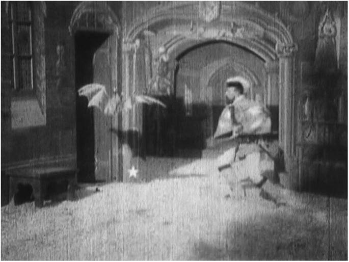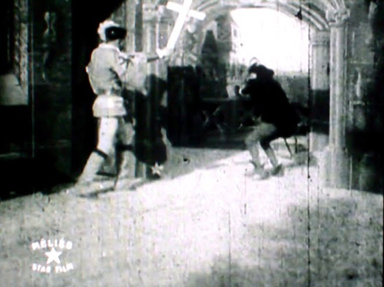 Что касается кино, то пионеру кинематографа, французу Жоржу Мельесу приписывают создание первых фильмов ужасов. Самая известная работа — это фильм 1896 года «Замок дьявола» (рис. 1). Ж. Мельес использовал простейшие эффекты, такие как мультиэкспозиция, ускоренная и замедленная съёмка, стоп-кадр. Ж. Мельес выступил в этой картине режиссером, сценаристом, продюсером, и художником, и актером первого плана. Продолжительность киноленты скромна — всего три минуты.