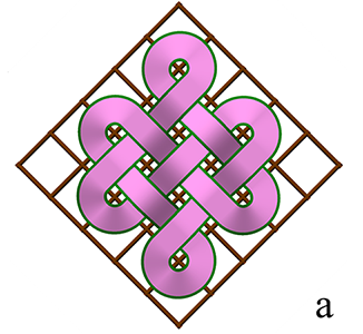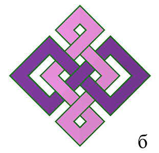 В процессе оцифровки и систематизации этих орнаментов было установлено, что большинство плетёнок состоит из одной замкнутой ленты, а более восьми лент в образцах не встречается (рис. 1б), т.е. с точки зрения математики большинство монгольских плетёных узоров являются узлами.