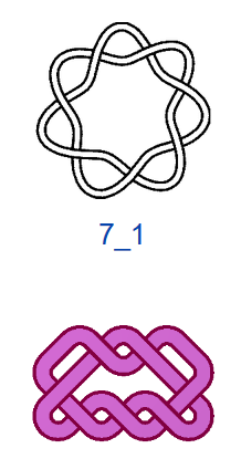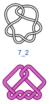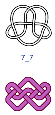 Число самопересечений N, то есть число двойных точек в плоской диаграмме узла, используют в качестве одной из мер сложности узлов. В обозначениях узлов на первом месте ставится число самопересечений N, на втором — порядковый номер узла. Если не рассматривать зеркальные отражения, то существует всего один тип узла, где N=3, — это так называемый «трилистник», и один тип узла с N=4. При N=5 существует два разных узла, а при N=6 — три. При N =7 разных узлов уже семь, и, начиная с этого момента, число типов узлов начинает резко возрастать. При N=13 их уже 12 965, при N=16 — 1 701 935. Не все проекции простых математических узлов обладают симметрией, поэтому число соответствующих им «простых» плетёных узоров будет меньше, чем число узлов, но оно также велико. При этом для узорных плетёнок характерно использование развязываемых петель и различные конфигурации больших петель (>2 клеток), что также увеличивает количество вариаций.