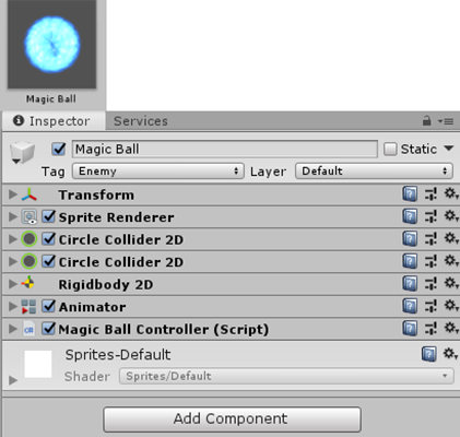 - Если в поле видимости Magic Ball попадает Player или Yeti, то объект переходит в состояние атаки.