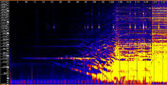 Результаты экспериментальной музыкальной педагогики (см. рис. 2) также могут быть использованы для этой цели, поскольку они не основаны на точной информации, данной композитором, на традиционно фиксированной нотной записи диктовки, а скорее пытаются стимулировать слушание, восприятие и подражание незнакомой музыке, так как это может быть сделано в общеобразовательных школах с учениками без специальной музыкальной подготовки, если эти ученики находят музыку интересной, и они способны сравнить услышанную музыку с другими, известными повседневными звуками и описать музыкальные примеры (см. рис. 3: сонограмма «Диаморфозы»).