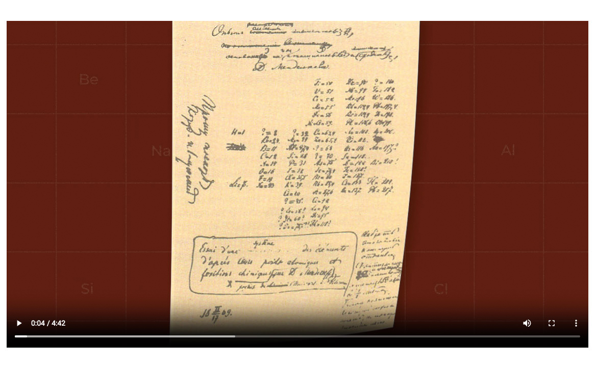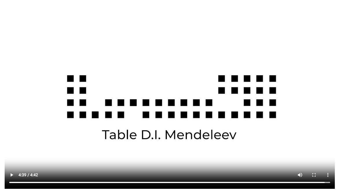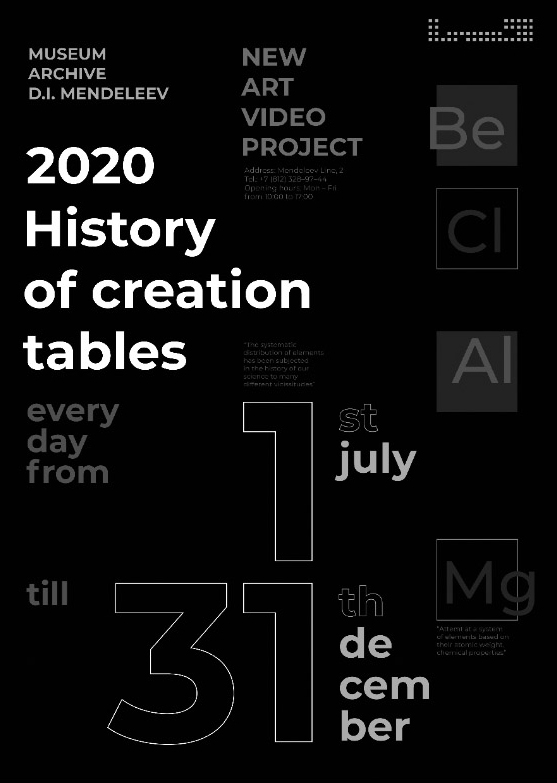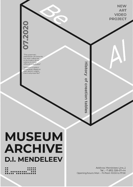 В результате в дизайн-проект было решено включить медиа-составляющую, которая дает возможность создать необходимую атмосферу для проведения экскурсий и лекций на тему Периодического закона Менделеева. Дизайн-проект сложился из разработанной векторной графики и анимации. В комплексе это дало возможность решить проблему организации музейного пространства для проведения экскурсионной работы. Медиа-составляющая образно рассказывающая об истории создания таблицы, поиске элементов, который протекал беспрерывно, перетекая из карточной игры в образы и сновидения, преследовавшие ученого, нашла отражение в медиа-ролике.