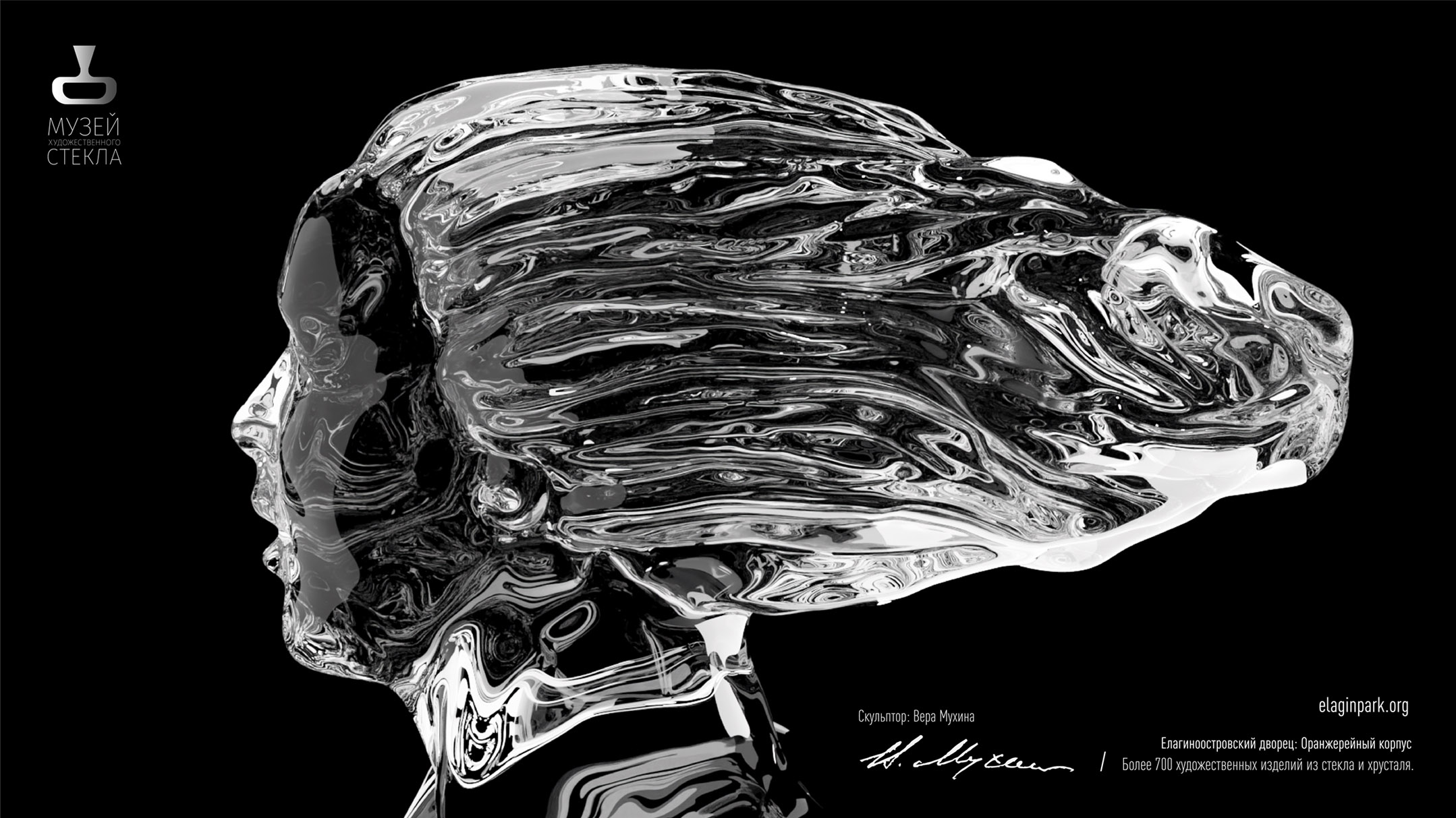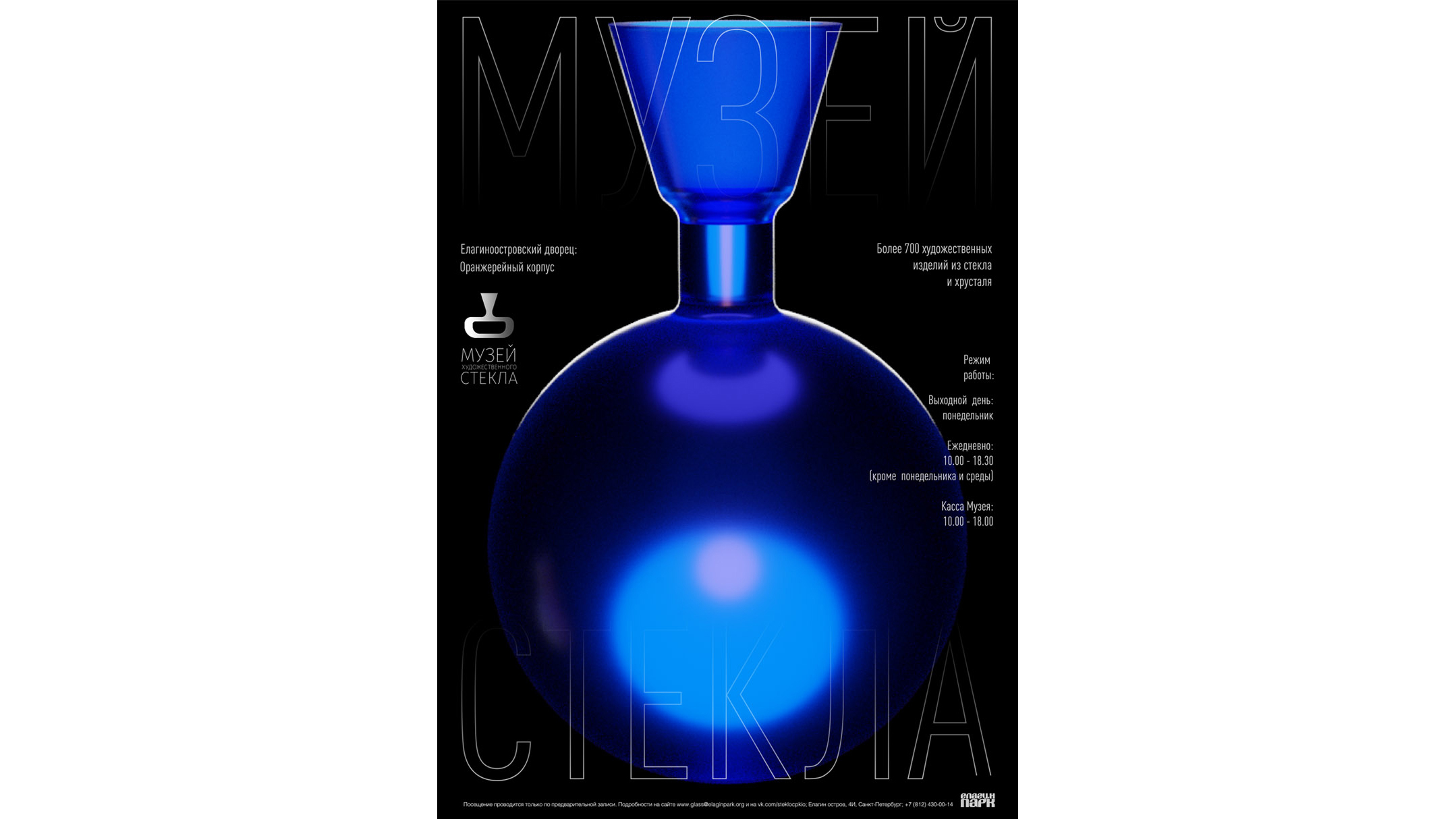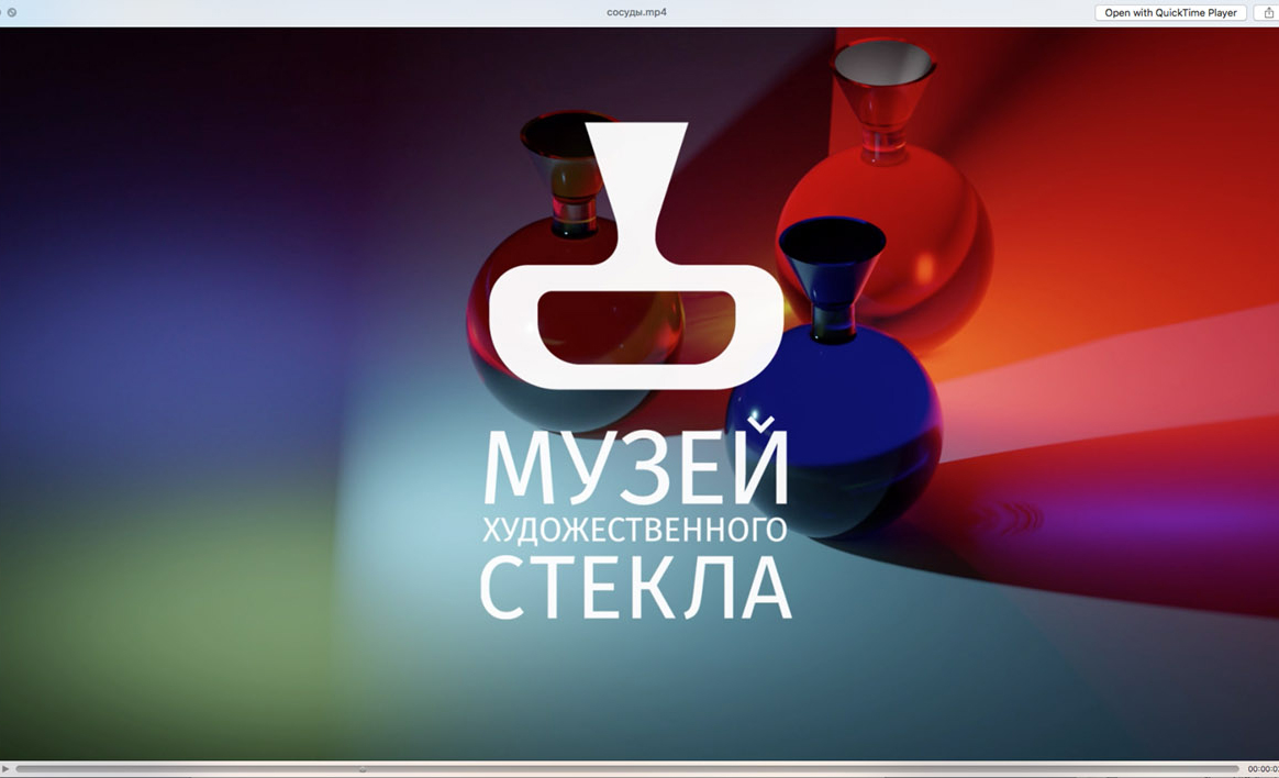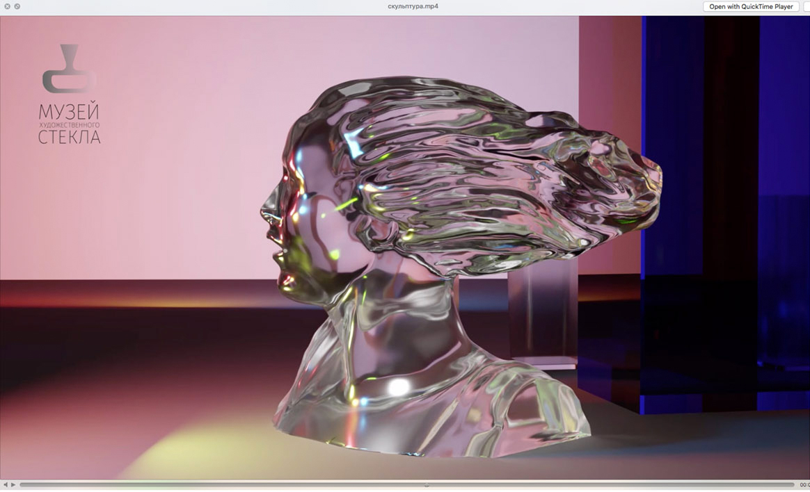 В рамках комплексного дизайн-проекта были разработаны плакаты для музея, как в печатном, так и в мультимедийном формате с включением 3D-моделей экспонатов Музея художественного стекла на Елагином острове (рис. 7). Автор проекта совместил 3D-моделирование и анимацию, чтобы показать все грани уникальных экспонатов музея. Такой формат демонстрации экспоната позволил привлечь внимание к отдельным экспонатам музея.